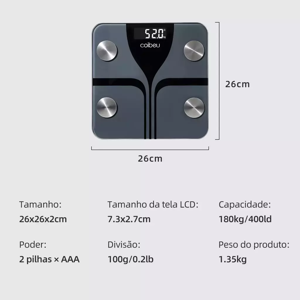 🎯 Precisão avançada: capacidade de até 180kg com divisão de 100g.